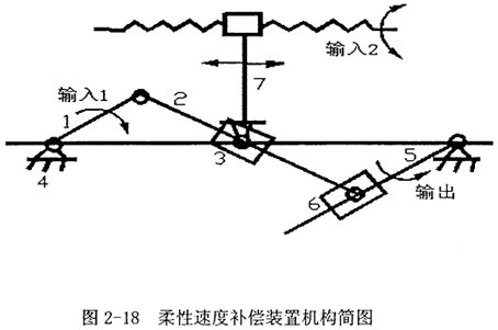 在這里該柔性速度補償裝置的特點可以簡述為,實質是一個二自由度機構,用一個等速電機驅動一個輸入構件,而另用一個伺服電機對另一輸入構件進行控制與調整,控制器和檢測系統(tǒng)判斷原執(zhí)行機構速度波動的狀況,根據波動情況實時控制伺服電機對二自由度機構的輸入速度和結構參數進行調整,得到可控制的速度波,以和原執(zhí)行機構的速度波疊加抵消,得到理想的速度輸出。