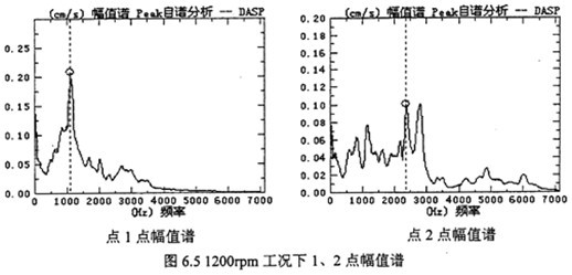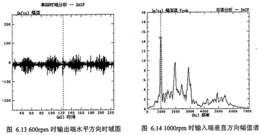 3)從表6.1及圖6.5分析可看出,各測(cè)點(diǎn)振動(dòng)幅值譜嚙合頻率及兩倍嚙合頻率其幅值為最大或較大,表明減速器兩端偏心軸轉(zhuǎn)動(dòng)一周過(guò)“死點(diǎn)”位置時(shí),減速器有沖擊振動(dòng)現(xiàn)象。
