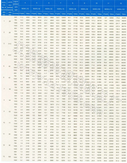 P1—公稱輸入功率,當(dāng)減速器輸入功率不是1500.1000.750r/min時(shí),可按最近表列轉(zhuǎn)速的一檔,折算P2