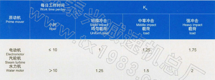 (1)、查表,斗提機(jī)屬中等沖中擊;查表Ks=1.5,查表=1.4