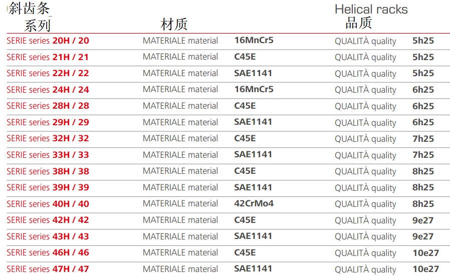 Gambini可使用不同類(lèi)型的原材料生產(chǎn)高精度的直齒條和斜齒條。我們生產(chǎn)的齒條模數(shù)范圍為0.530,品質(zhì)等級(jí)范圍為510。品質(zhì)等級(jí)為5的齒條最大長(zhǎng)度為1000mm,如果品質(zhì)等級(jí)為6,可生產(chǎn)的單件長(zhǎng)度可達(dá)2000mm.