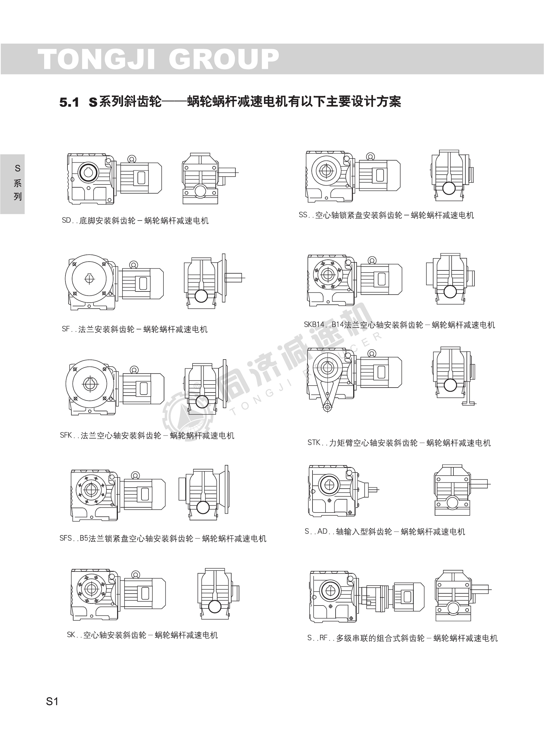 確保軸平行度和定位軸承要求,形成斜齒輪傳動(dòng)總成的減速機(jī)配置了各種類電機(jī),組合成