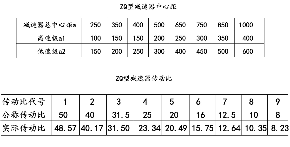 2Q齒輪減速機(jī)規(guī)格:ZQ200、ZQ250、ZQ35、ZQ400、ZQ500、ZQ650、ZQ750、ZQ850、ZQ1000ZQ齒輪減速機(jī)傳動(dòng)比:48.57、40.17、31.5、23.34、20.49、15.75、12.64、10.35、8.23。ZD單級(jí)產(chǎn)品規(guī)格:10、15、20、25、30、35、40、45、50、60、70、80ZD單級(jí)傳動(dòng)比:2、2.24、2.5、2.8、3.15、3.55、4、4.5、5、5.6、6.3ZL兩級(jí)產(chǎn)品規(guī)格:25、35、42.5、50、60、75、85、100、115、130.ZL兩級(jí)傳動(dòng)比:7.1、8、9、10、11.2、12.5、14、16、18、20、22.4、25、28、31.5、35.5、40、45ZS三級(jí)產(chǎn)品規(guī)格:50、65、75、82.5、95、100、125、145、165。ZS三級(jí)傳動(dòng)比:50、56、63、71、80、90、100、112、125、140、160、180、200、224、250、280