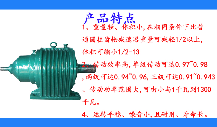 1、重量輕、體積小,在相同條件下比普通圓柱齒輪減速器重量可減輕1/2以上,體積可縮小1/2-132、傳動效率高,單級傳動可達0.97~0.98,兩級可達0.94~0.96,三級可達0.91~0.943、傳動功率范圍大,可由小與1千瓦到1300千瓦。4、運轉平穩(wěn)、噪音小,且耐用、壽命長。