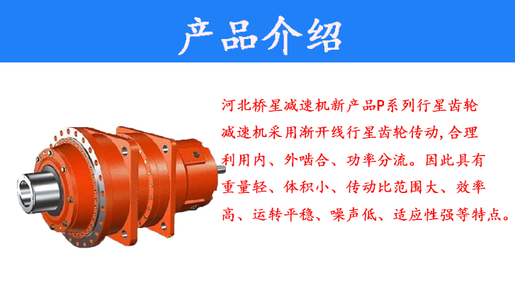河北橋星減速機(jī)新產(chǎn)品P系列行星齒輪減速機(jī)采用漸開線行星齒輪傳動(dòng),合理利用內(nèi)、外嚙合、功率分流。因此具有重量輕、體積小、傳動(dòng)比范圍大、效率高、運(yùn)轉(zhuǎn)平穩(wěn)、噪聲低、適應(yīng)性強(qiáng)等特點(diǎn)。