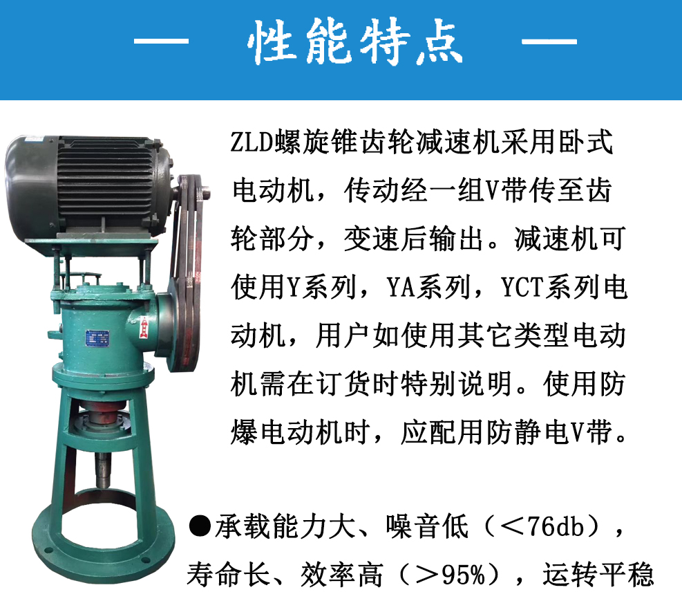 ZLD螺旋錐齒輪減速機具有以下特點:承載能力大,噪音低(<76dB),壽命長,效率高(>95%),運轉(zhuǎn)平穩(wěn)。