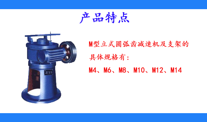 M型立式圓弧齒減速機及支架的具體規(guī)格有:M4、M6、M8、M10、M12、M14