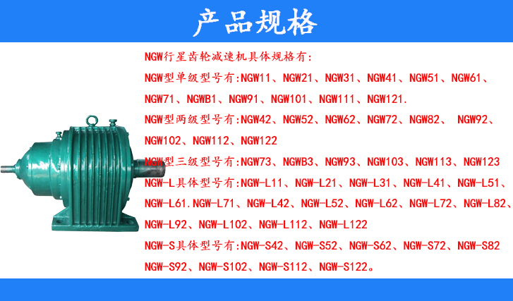 NGW行星齒輪減速機具體規(guī)格有:NGW型單級型號有:NGW11、NGW21、NGW31、NGW41、NGW51、NGW61、NGW71、NGWB1、NGW91、NGW101、NGW111、NGW121.