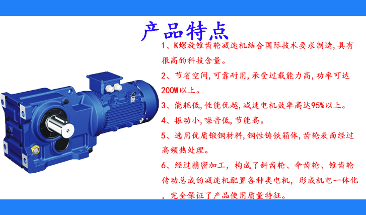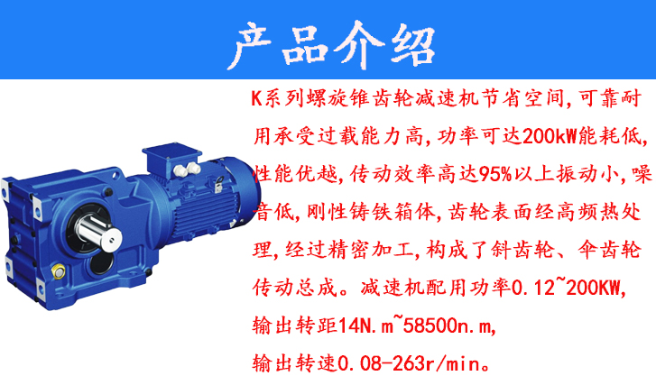 1、K螺旋錐齒輪減速機結(jié)合國際技術要求制造,具有很高的科技含量。