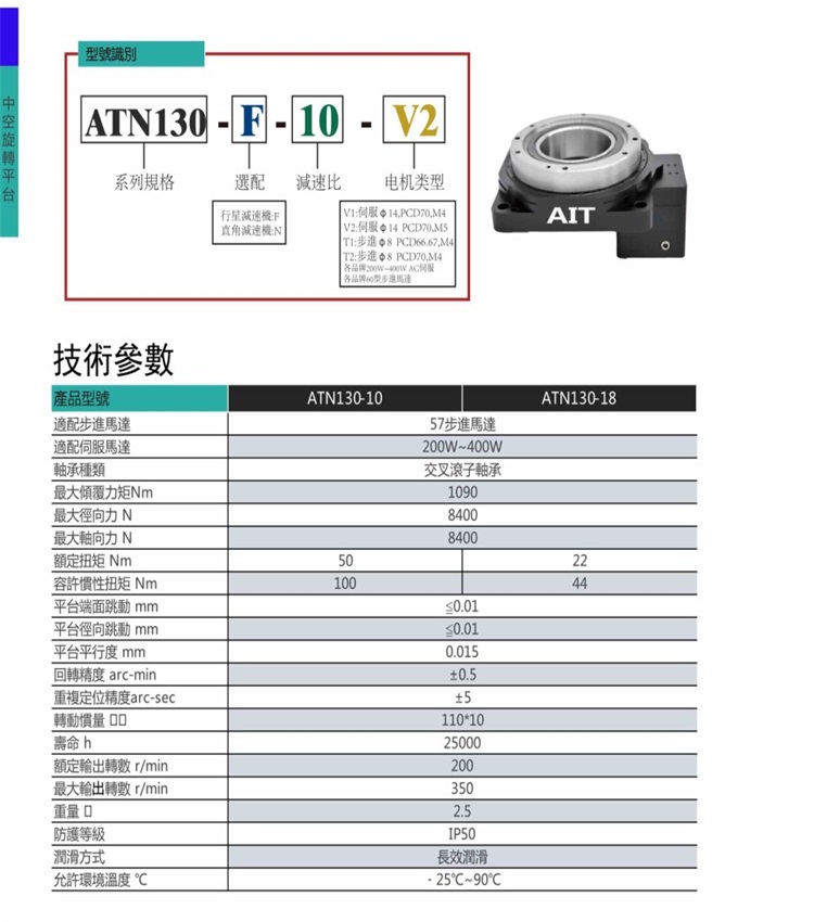 使用高剛性的交叉斜角滾子軸承與旋轉平臺面呈現(xiàn)一體化的設計,可承受大慣性的圓盤裝置,整組搭配步進馬達及驅動器。
