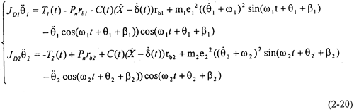 由于θ,前面的系數(shù)和時(shí)變剛度K(t)及θ,,有關(guān),不是常數(shù),故方程組(2-14)也是一個(gè)非線性時(shí)變方程組。