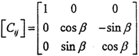 如圖2-21所示,坐標(biāo)系OXjYjZj可以看作是坐標(biāo)系OXiYiZi繞Xi(或Xj)旋轉(zhuǎn)了一個角β度。旋轉(zhuǎn)的方向余弦矩陣為: