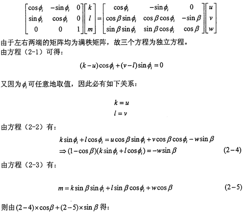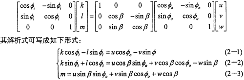 進行坐標(biāo)變換有:(即由坐標(biāo)系OXjYjZj變換到坐標(biāo)系OXiYiZi其中(Xi,Yi,Zi),(Xj,Yj,Zj)分別表示某點在兩坐標(biāo)系中的坐標(biāo)。)