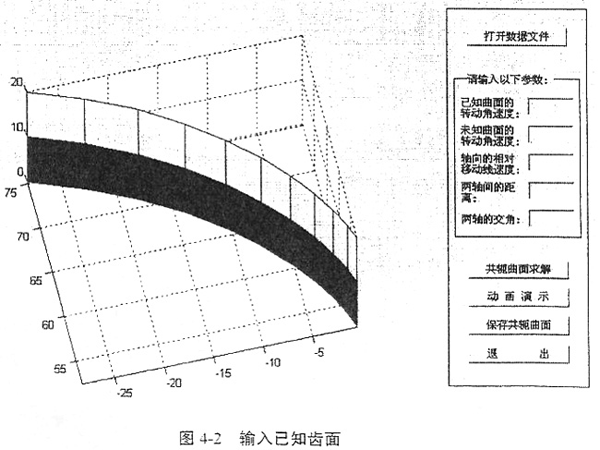 用Conjugater1.0求解鼓形齒面的過(guò)程和結(jié)果如下圖4-8、圖4-9、圖4-10所示。這樣,用數(shù)字化共軛曲面求解方法,通過(guò)計(jì)算直齒面的二次包絡(luò),就得到了嚴(yán)格滿足共軛條件的鼓形齒面。