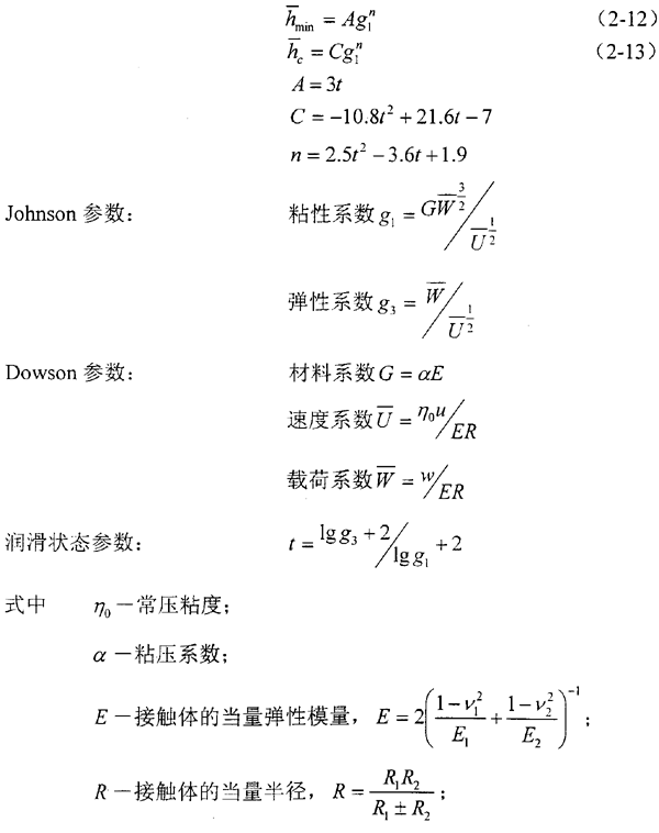 2.6.1 潤滑狀態(tài)的判斷及油膜厚度的計(jì)算