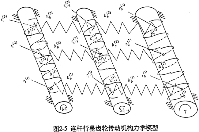 國(guó)科2-3所示為一多相并列連桿行星齒輪過(guò)約束機(jī)構(gòu)。為了得到與靜不定次數(shù)相對(duì)應(yīng)的S個(gè)補(bǔ)充方程,必考慮各構(gòu)件間、各相機(jī)構(gòu)間、以及多齒承載的位移協(xié)調(diào)要求,這是分析具有多余聯(lián)系體系受力的一般方法。為此,可先將機(jī)構(gòu)轉(zhuǎn)化為受力、變形等效的結(jié)構(gòu)(幾何不變體系),然后用結(jié)構(gòu)力學(xué)的方法分析系統(tǒng)、構(gòu)件位移協(xié)調(diào)的條件。