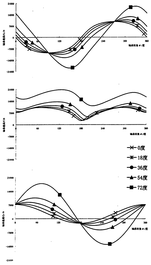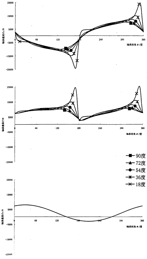 圖3.15 連桿相位角對(duì)輸入軸連桿軸承周期載荷的影響