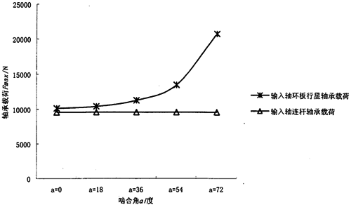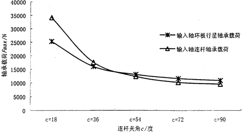 圖3.12 (連桿式)嚙合角對(duì)軸承最大載荷的影響