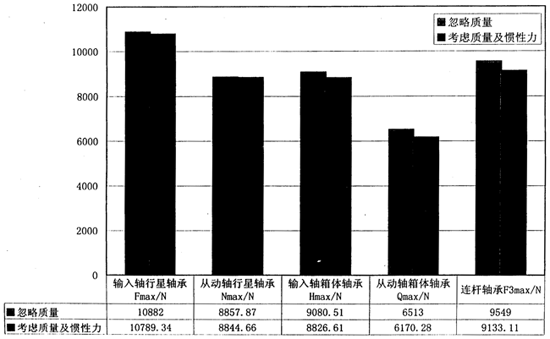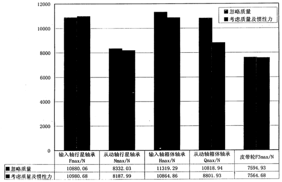 圖2.21 (連桿式)考慮質(zhì)量前后軸承載荷的比較