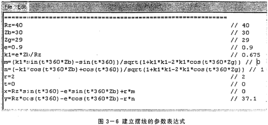 參照上述的擺線輪齒廓形狀曲線表達(dá)式,在UG中建立的擺線的參數(shù)表達(dá)式見下圖: