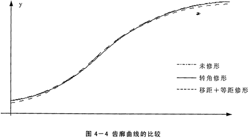 以上三種齒廓修形法中,轉(zhuǎn)角修形法不僅機(jī)構(gòu)調(diào)整麻煩,而且不能單獨使用,然而采用適當(dāng)?shù)囊凭嘈扌瘟亢偷染嘈扌瘟肯嘟M合的方法可使磨削出的齒廓與用轉(zhuǎn)角修形法得到的齒廓相接近,因此在傳動中可使多對齒同時嚙合,并且在齒頂和齒根處均有間隙存在,采用這樣的修形方法磨削擺線輪比轉(zhuǎn)角修形法方便得多。