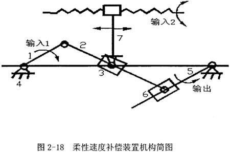 在這里該柔性速度補(bǔ)償裝置的特點(diǎn)可以簡述為,實(shí)質(zhì)是一個二自由度機(jī)構(gòu),用一個等速電機(jī)驅(qū)動一個輸入構(gòu)件,而另用一個伺服電機(jī)對另一輸入構(gòu)件進(jìn)行控制與調(diào)整,控制器和檢測系統(tǒng)判斷原執(zhí)行機(jī)構(gòu)速度波動的狀況,根據(jù)波動情況實(shí)時控制伺服電機(jī)對二自由度機(jī)構(gòu)的輸入速度和結(jié)構(gòu)參數(shù)進(jìn)行調(diào)整,得到可控制的速度波,以和原執(zhí)行機(jī)構(gòu)的速度波疊加抵消,得到理想的速度輸出。