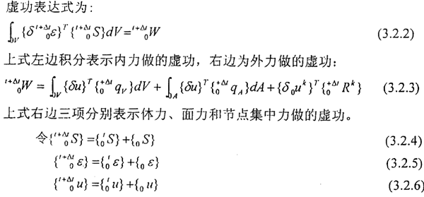 式(3.4.14)(3.4.19)為增量形式的完全拉格朗日(T.L)方程。
