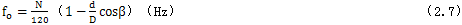 2.軸承等傳動件產(chǎn)生的激勵頻率滾動軸承旋轉頻率為:
