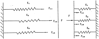 實際上,環(huán)板的受力與Fn(ф)有關,因為三塊環(huán)板共同受載時彼此約束,構成靜不定系統(tǒng),如簡化模型圖2-8所示。