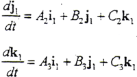以i1、j1、k1分別點(diǎn)乘以上三式的兩邊,有