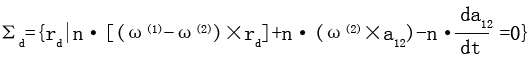 由(2-5-1)式知,它是r(1)、r(2)需滿足的微分方程。Σ1、Σ2在接觸的最初階段,接觸參考點(diǎn)在接觸力作用下,隨著Σ1、Σ2的相對(duì)運(yùn)動(dòng),變形逐漸增大,在此階段,
