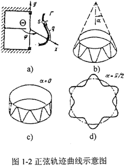 正弦活齒傳動屬于活齒少齒差行星齒輪傳動,是一種利用鋼球和正弦滾道組成的滾動嚙合變速裝置。按照正弦曲線軌跡所在回轉面的類型,正弦活齒傳動可分為平面正弦活齒、圓柱正弦活齒及圓錐正弦活齒傳動等,圖1-2所示為共扼正弦曲線軌跡的示意圖。當φ從0到2π變化,正弦曲線Γ在回轉面上被描述出來。如果Θ代表主動軸坐標系,則曲線Γ表示主動軸回轉面上的正弦曲線,若Θ代表殼體坐標系,則曲線Γ表示殼體回轉面上正弦曲線。回轉面可以是錐面(圖1-2b)、圓柱面(圖1-2c)、平面(圖1-2d),還可以為拋物面、雙曲面、超環(huán)面等。若按與活齒嚙合的正弦滾道數(shù)目劃分,正弦活齒傳動可分為雙正弦活齒傳動(圖1-3)和三正弦活齒傳動(圖1-4)。