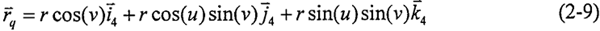 圓柱正弦活齒傳動中的活齒為規(guī)則球體,則其齒面方程即為球面方程,活齒坐標(biāo)系如圖2-6 所示,活齒齒面方程用球面坐標(biāo)表達(dá)為: