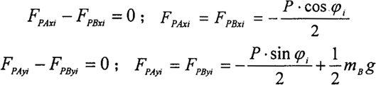 ∑FPyi=FPAyi+FPByi+Pisinφi-mBg=0 (2-13)