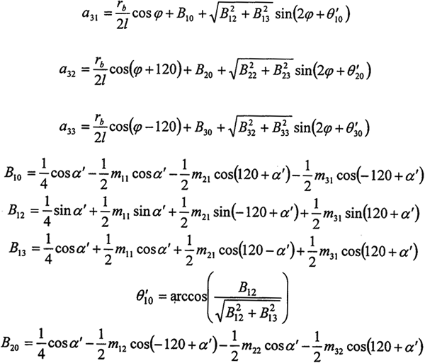 由上式可看出,任意時刻各環(huán)板上作用的嚙合力是不相等的,且是與轉(zhuǎn)角、環(huán)板和曲柄軸結(jié)構(gòu)尺寸、壓力角以及偏心尺寸有關(guān)的復(fù)雜函數(shù),假設(shè)各嚙合力相等或者是成一簡單的函數(shù)關(guān)系都是與實際嚴格不符的。若需要用簡潔的函數(shù)關(guān)系加以描述,應(yīng)首先利用上式求出輸出軸旋轉(zhuǎn)一周時的數(shù)個嚙合力的表達式,這里不作詳細的討論。