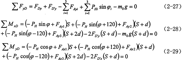 2.曲柄軸支撐軸承的作用力分析 根據(jù)力學(xué)原理,對(duì)于輸入同可得到下列方程式: