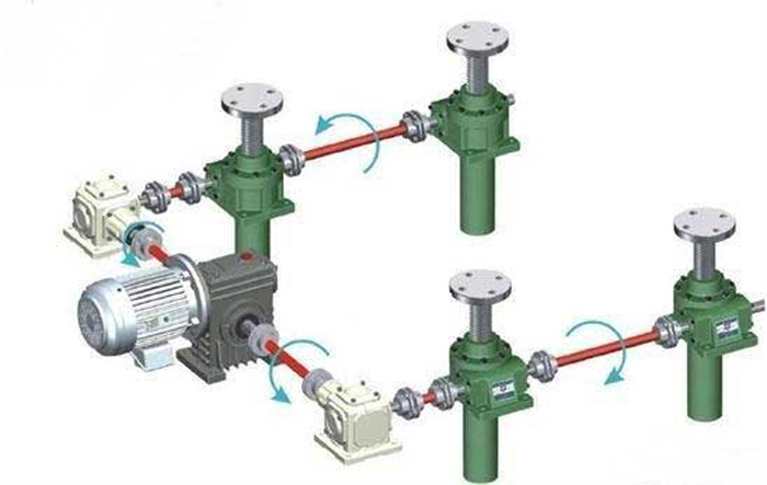 四臺(tái)聯(lián)動(dòng)升降平臺(tái),由四臺(tái)升降機(jī),兩臺(tái)轉(zhuǎn)向箱,若干連桿,連軸器,一臺(tái)WP雙出軸減速機(jī),一臺(tái)電機(jī)組合而成.屬于常用的H型結(jié)構(gòu)...