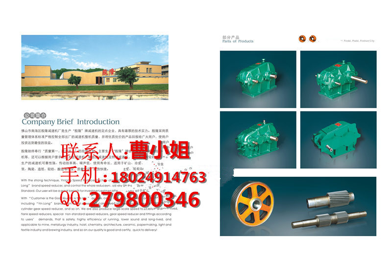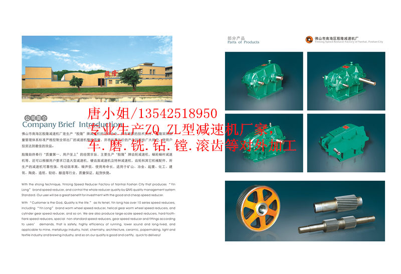 本企業(yè)始終奉行“質(zhì)量高,用戶至上”的經(jīng)營宗旨,主要生產(chǎn)“殷隆”牌齒輪減速機,蝸輪蝸桿減速機等,還可以根據(jù)用戶要求訂造大型減速機,硬齒面減速機及特種減速機,齒輪和其他機械配件,所生產(chǎn)的減速機可靠性強、傳動效率高、噪音低、使用壽命長,適用于礦山、冶金、起重、化工、建筑、陶瓷、造紙、輕紡、釀酒等行業(yè),質(zhì)量保證,起貨快捷。  佛山松卓減速機械有限公司是一家私營企業(yè),法人代表張民柱,所在地區(qū)位于廣東佛山市,主營產(chǎn)品或服務為各種減速機,非標減速機,齒輪減速機,JZQ減速機,ZQ減速機,Z
