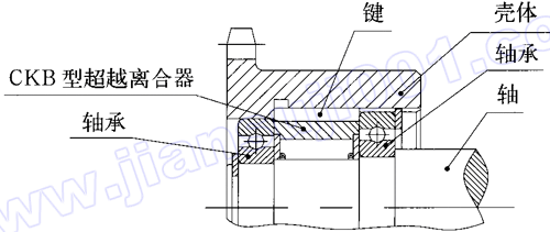 CKB型即國外B200系列,為無內(nèi)環(huán)無軸承支撐的楔塊式超越離合器。使用時(shí),將軸直接安裝在離合器內(nèi),用于離合器的軸在磨削后需要熱處理,硬度達(dá)到HRC58~62,軸的錐度每50mm不應(yīng)超過0.01mm。為保證軸和離合器外的同心度,承受外環(huán)和軸的徑向或軸向負(fù)載,要在離合器的兩端或一端裝上軸承。適用于極限轉(zhuǎn)速為:1000~2400r/min,公稱轉(zhuǎn)矩為:60~1250N·m。常用于包裝機(jī)、制袋機(jī)、瓦楞紙生產(chǎn)線、減速機(jī)、提升機(jī)、電動(dòng)滾筒等機(jī)械傳動(dòng)。