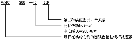 ![]() ![]() WH系列圓弧齒圓柱蝸輪減速機型號說明及標記示例